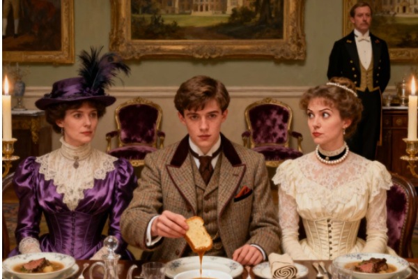 In 19th-early 20th century British upper-class events, strict etiquette reigned. Dipping bread in sauce, wrong utensil use, or controversial talks were rude enough to end social invitations. Formal dinners had strict seating plans; straight posture was mandatory. Guests only spoke to left/right neighbors, switching when the hostess signaled (the “table turn”). Bathroom trips during meals—even long ones—were totally unacceptable.